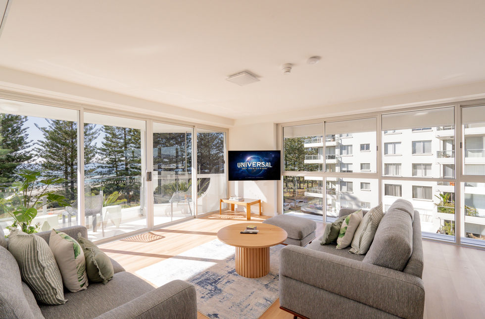 Midway up our Castle By The Sea, on our Southern End, sits Blue Horizons. This newly renovated and freshly styled 3 bedroom apartment is perfect for families or groups of friends, with a comfortable but spacious living area, good separation between the master bedroom (and ensuite) and the kids bedrooms, and a big modern kitchen for meals at home.