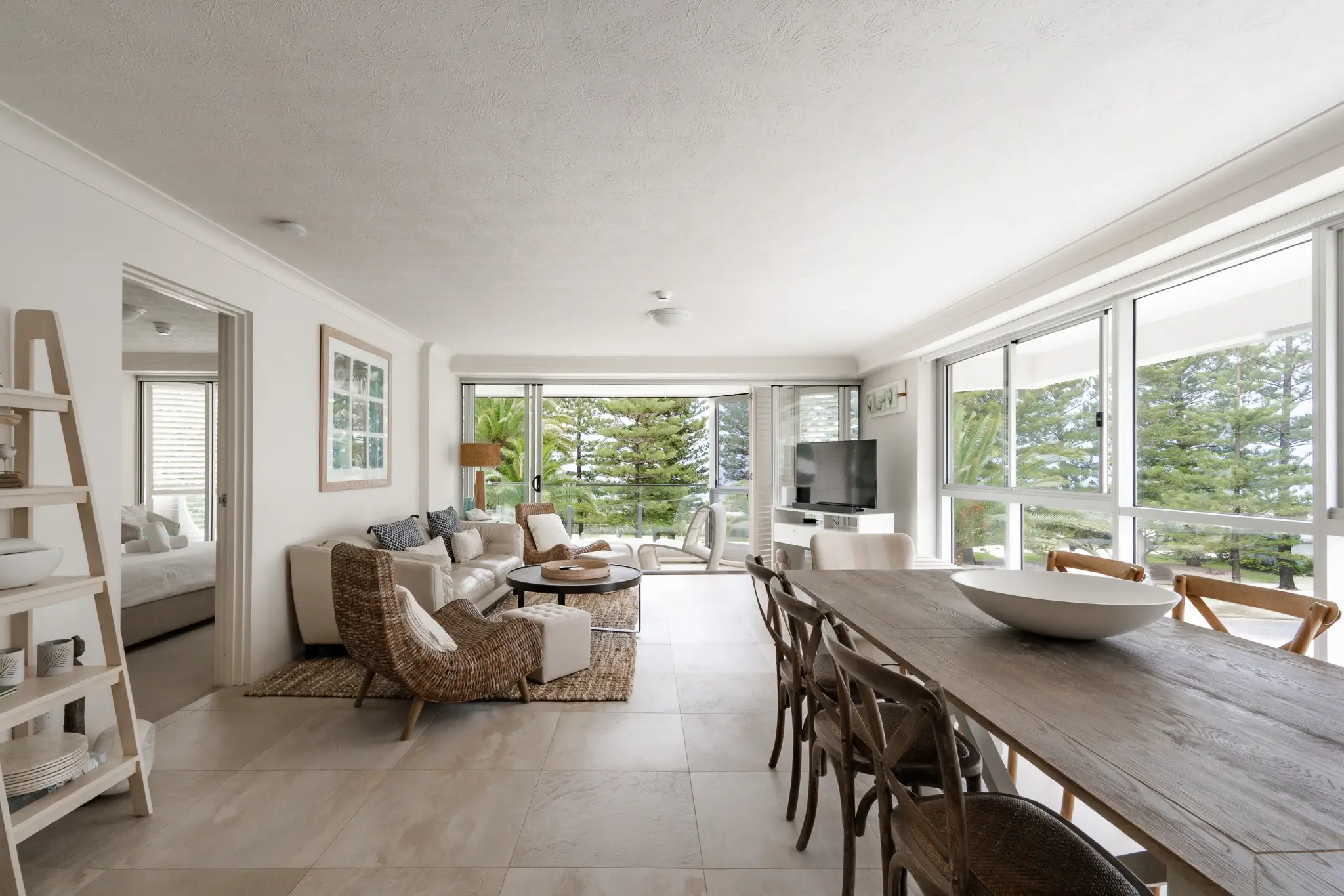 With fresh renovations and new furnishings, this 3 bedroom apartment is perfect for families or groups of friends. There is a lovely living area buttressed by wraparound views of the Burleigh Heads esplanade and Burleigh Pines, the beach filtered through as well.